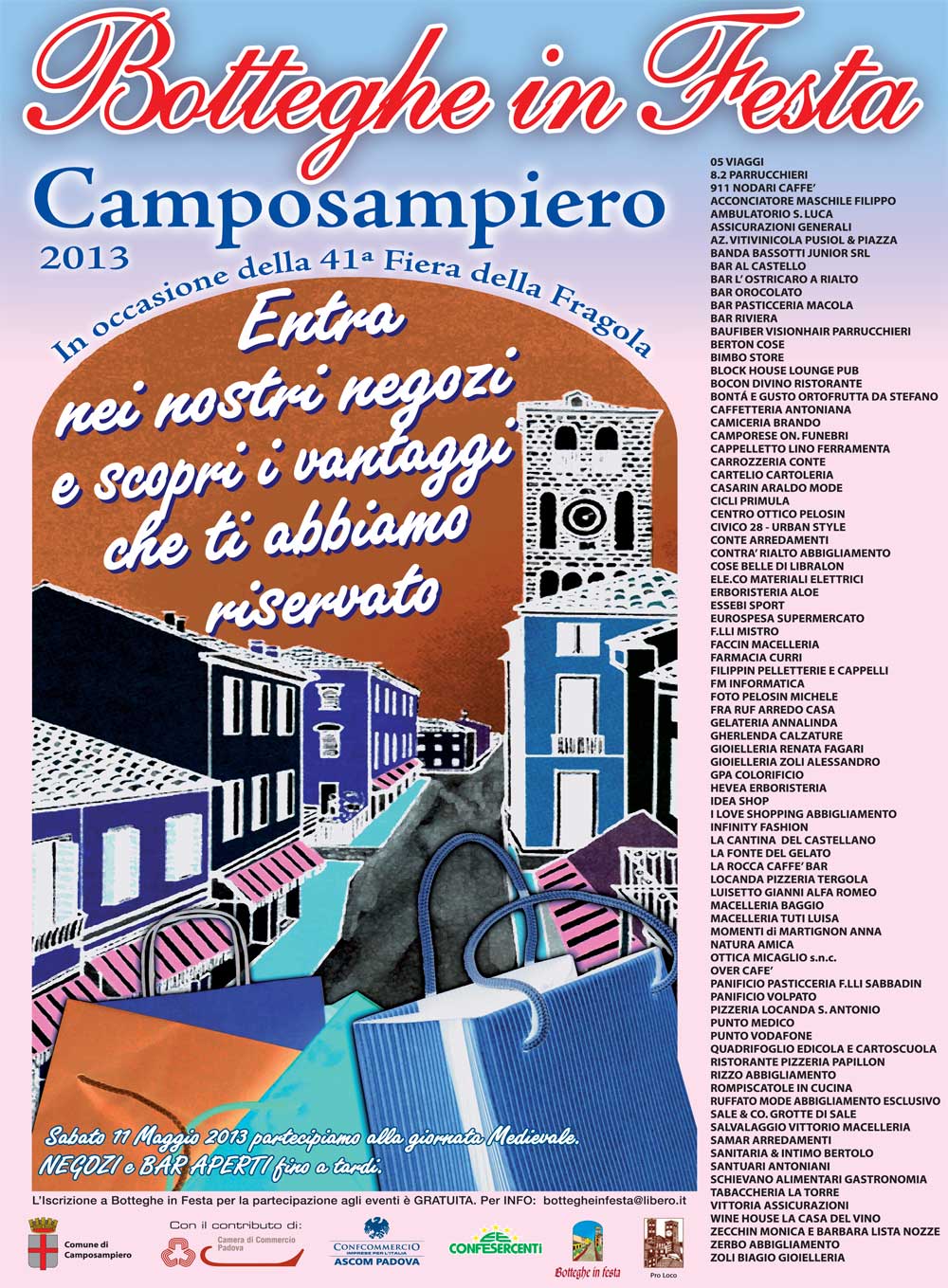 L’iniziativa è organizzata dal Comune di Camposampiero, l’ Assessorato alla cultura, la pro loco, con la collaborazione dei commercianti delle “botteghe in festa” e sostenuta dall’Ascom Confcommercio.