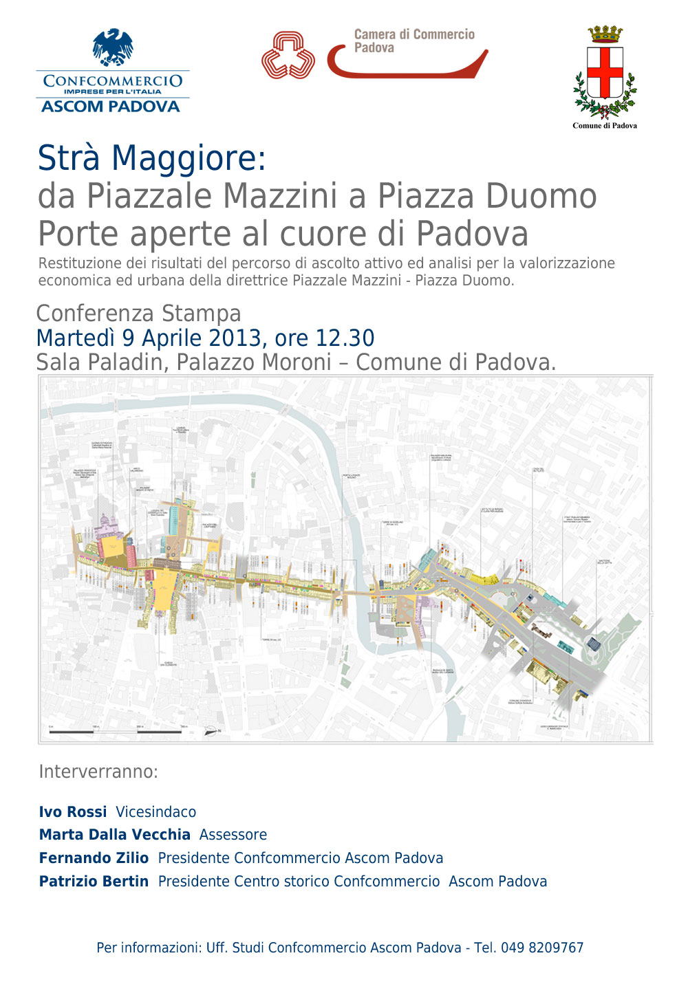 UN VOLTO NUOVO PER “STRA’ MAGGIORE”: IL TRATTO DEL CENTRO STORICO DI PADOVA CHE VA DA PIAZZALE MAZZINI A PIAZZA DUOMO: LA PRESENTAZIONE DELLE PROPOSTE DI VALORIZZAZIONE DELL’AREA DA PARTE DELL’ASCOM E DELLA CAMERA DI COMMERCIO MARTEDI’ 9 APRILE A PALAZZO MORONI