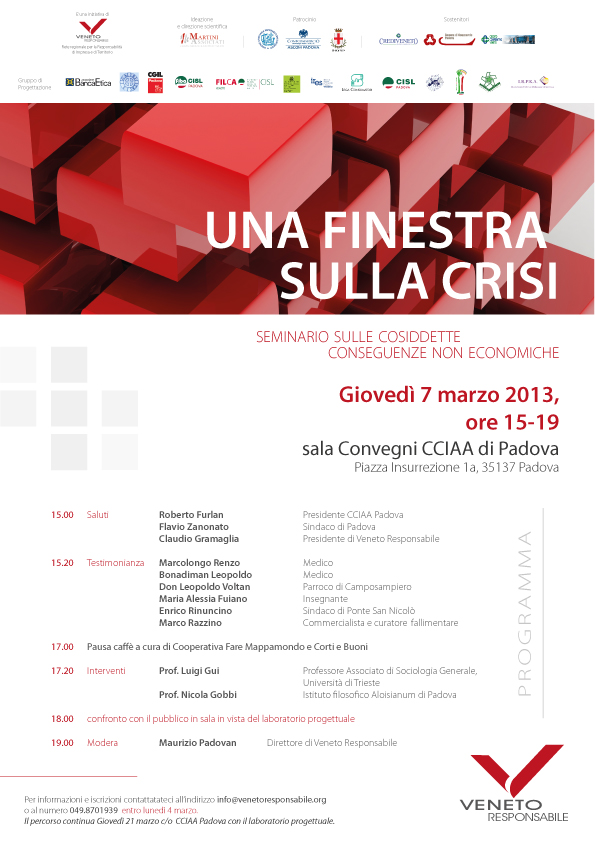 “UNA FINESTRA SULLA CRISI” - SEMINARIO SULLE COSIDDETTE CONSEGUENZE NON ECONOMICHE IN CALENDARIO GIOVEDI’ 7 MARZO ALLE ORE 15 PRESSO LA CAMERA DI COMMERCIO DI PADOVA
