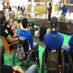 Tutto il magico mondo di Olivia si è riversato quindi al Padiglione 8 in un lungo pomeriggio di giochi di bimbi che ha visto il culmine nella presentazione da parte di Valentina Bertin, tradotta dall’interprete Livia De Paolis, e di Riccardo Capitanio, presidente dei Giovani Imprenditori, dell’associazione, dei suoi componenti e dei suoi scopi, oltre alla rappresentativa del mondo del rugby che da sempre affianca Olivia con generosità e simpatia, con i giocatori del Petrarca Rugby e della nazionale italiana di rugby in carrozzina, e all’intervento in diretta video di Martin Castrogiovanni, pilone della nazionale Italiana di rugby, testimonial ufficiale dell’Associazione.