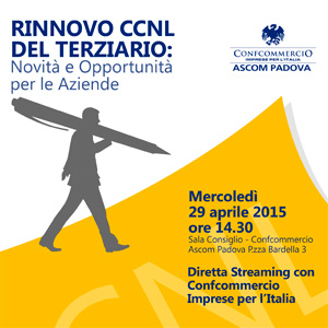 RINNOVO DEL CCNL DEL TERZIARIO: LA DIRETTA STREAMING ALL’ASCOM DI PADOVA IL 29 APRILE