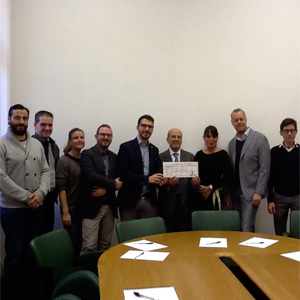 I Giovani Imprenditori Ascom, con il loro Presidente Riccardo Capitanio assieme a Stefano De Troia, Valentina Bertin, Max Losego e Giuseppe Borin hanno potuto così consegnare un altro contributo alla ricerca, un assegno di mille euro, direttamente nelle mani del prof. Pagano, assieme ad alcuni rappresentanti del VIMM quali l’immunologa Antonella Viola, il bioingegnere Nicola Elvassore, e l’oncologo Francesco Piazza.