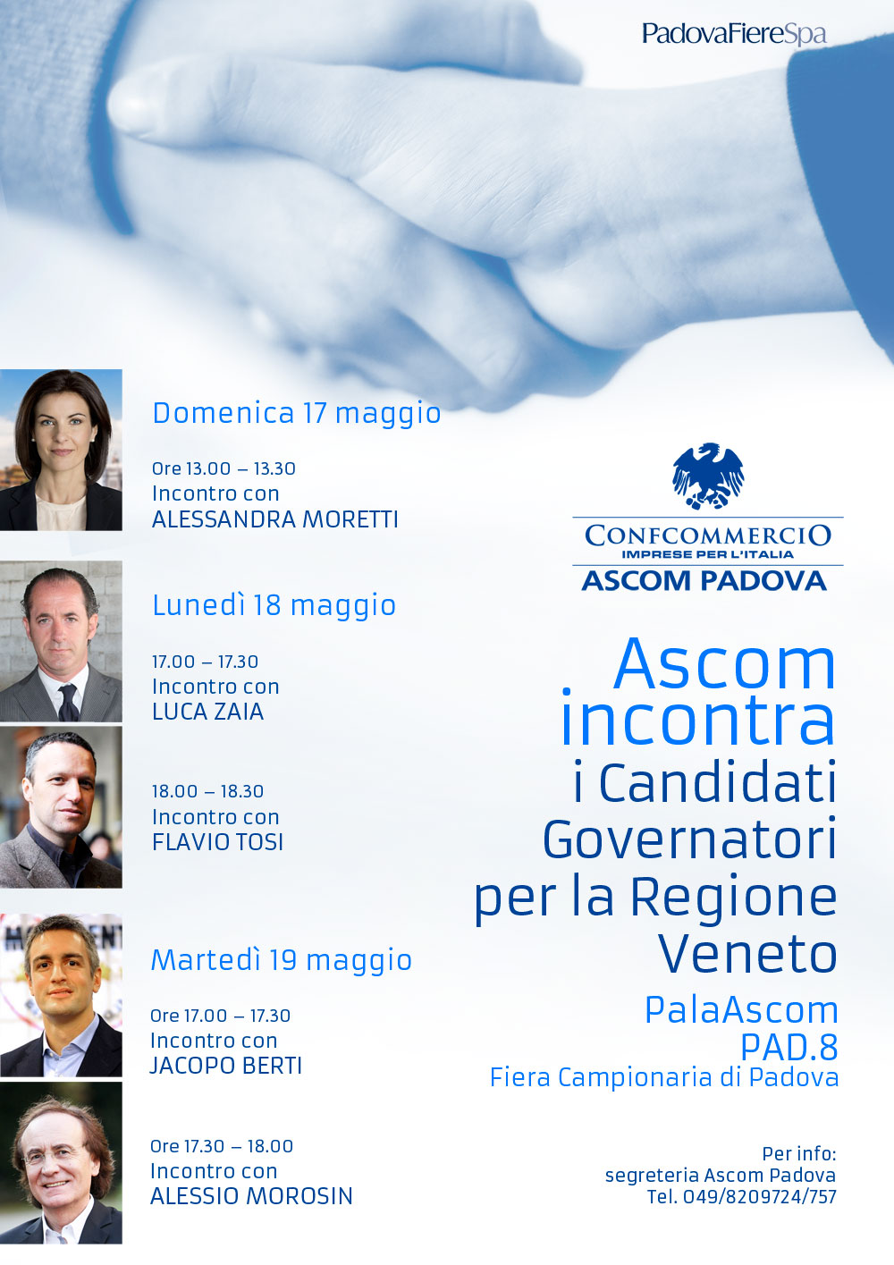 L'ASCOM INCONTRA I CANDIDATI GOVERNATORI AL PALAASCOM IN FIERA DA DOMENICA 17 A MARTEDI’ 19: IL CALENDARIO DEGLI INCONTRI