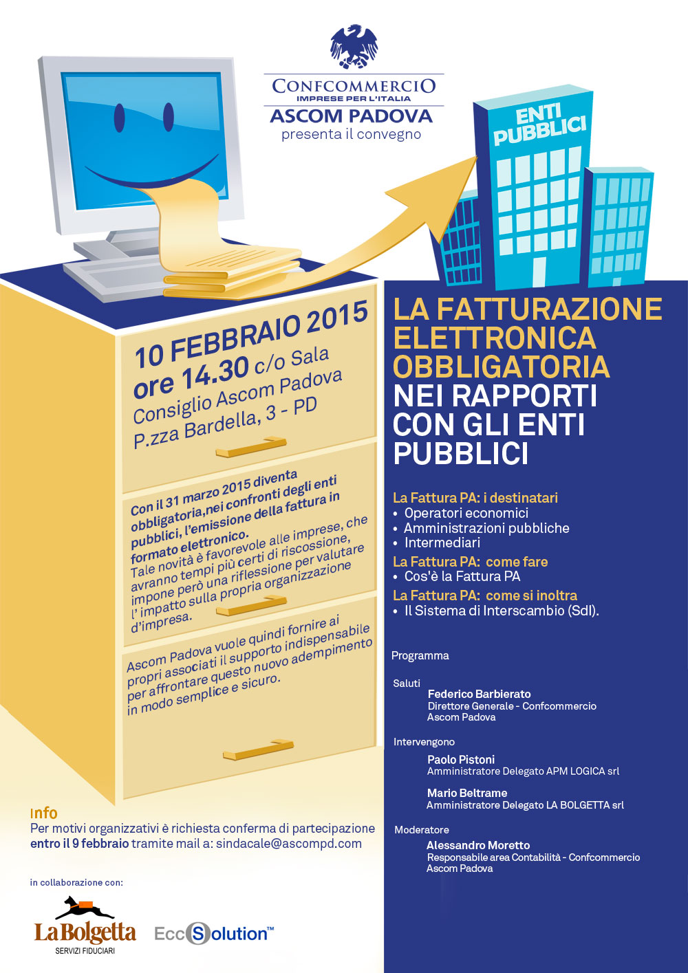 MARTEDI’ PROSSIMO, 10 FEBBRAIO, ALLE 14.30, ALL’ASCOM IN PIAZZA BARDELLA SI SVELERANNO I SEGRETI DELLA FATTURA ELETTRONICA OBBLIGATORIA (DAL 31 MARZO) NEI RAPPORTI CON GLI ENTI PUBBLICI