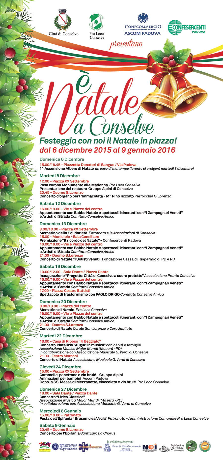 Grazie ad una sinergia che coinvolge l'Ascom di Padova assieme al comune di Conselve, la Pro Loco e altri promotori locali, un contenitore ricchissimo di eventi dal 6 dicembre al 9 gennaio.