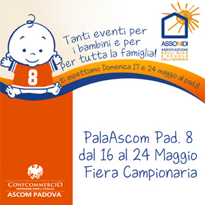A partire dalle 15, in PalaAscom - Pad. 8 della Fiera, una domenica per le famiglie e i bambini con Doriana Maria Mason, presidente del Gruppo ASSONIDI ASCOM Padova, che coinvolgerà grandi e piccini in una scatenata rassegna di karaoke percorrendo le tappe di tutti i successi per bambini più amati e conosciuti.