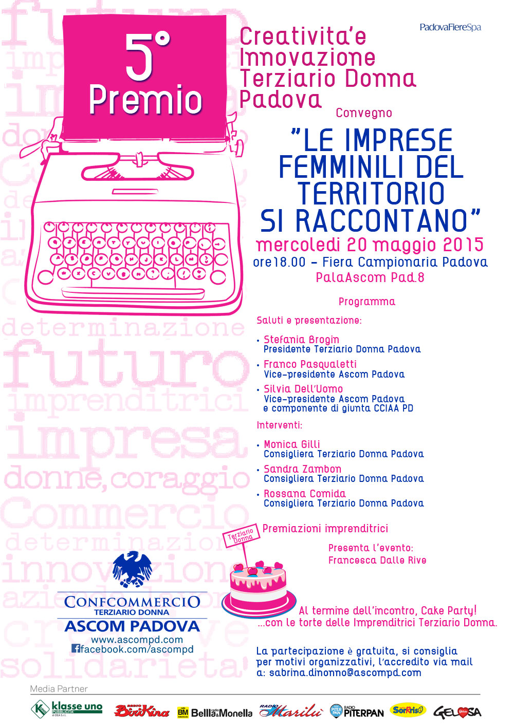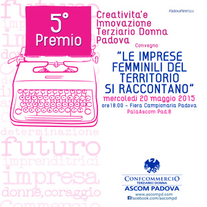 Mercoledì 20 maggio a partire dalle 18 si terrà infatti il “5° Premio Creatività e Innovazione Terziario Donna Padova” nell’ambito del convegno dal titolo “Le imprese femminili del territorio si raccontano”.