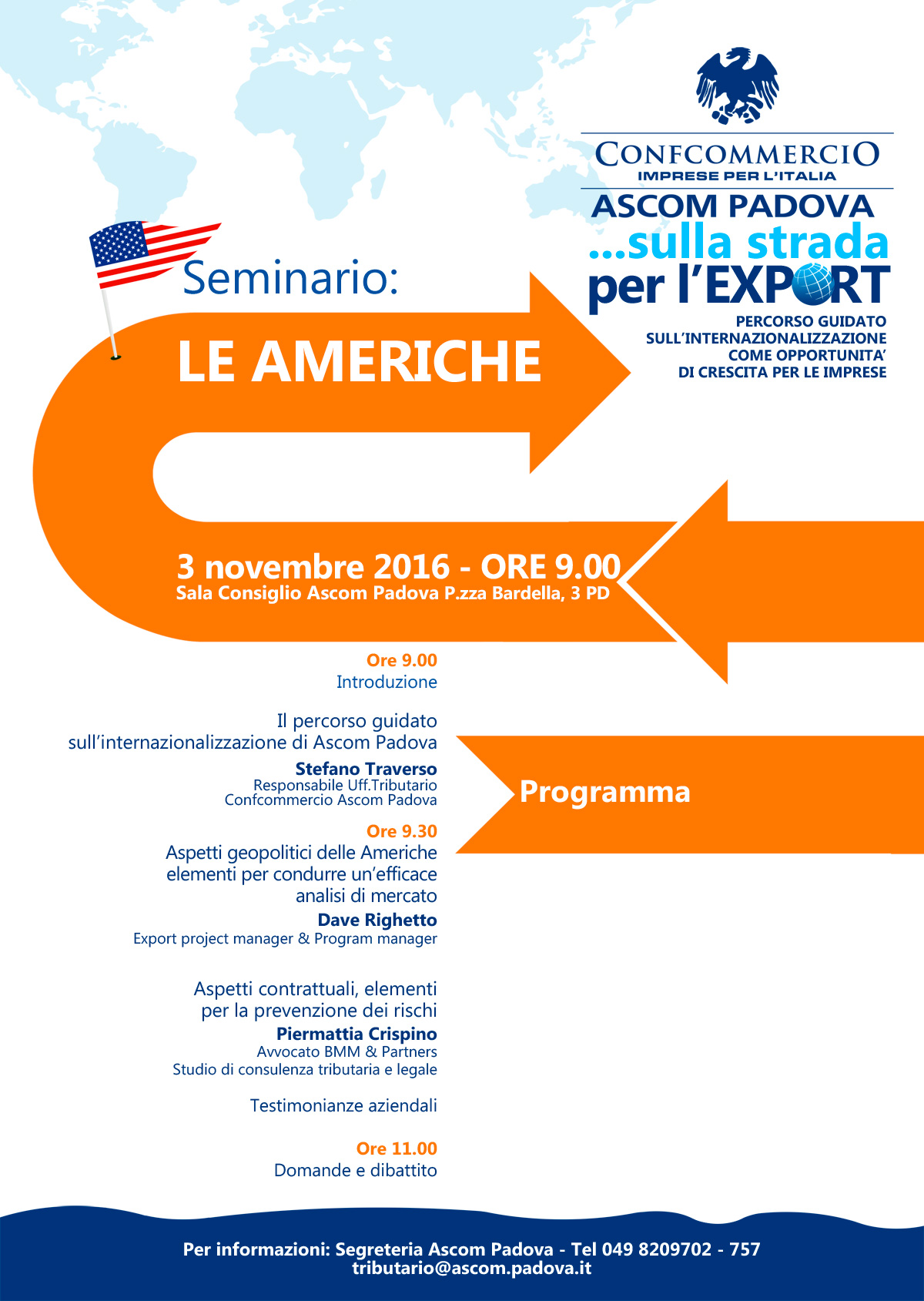 ULTIMA PUNTATA DEL PERCORSO “SULLA STRADA DELL’EXPORT”. SI PARLERA’ DI AMERICHE GIOVEDI’ 3 NOVEMBRE ALL’ASCOM DI PADOVA