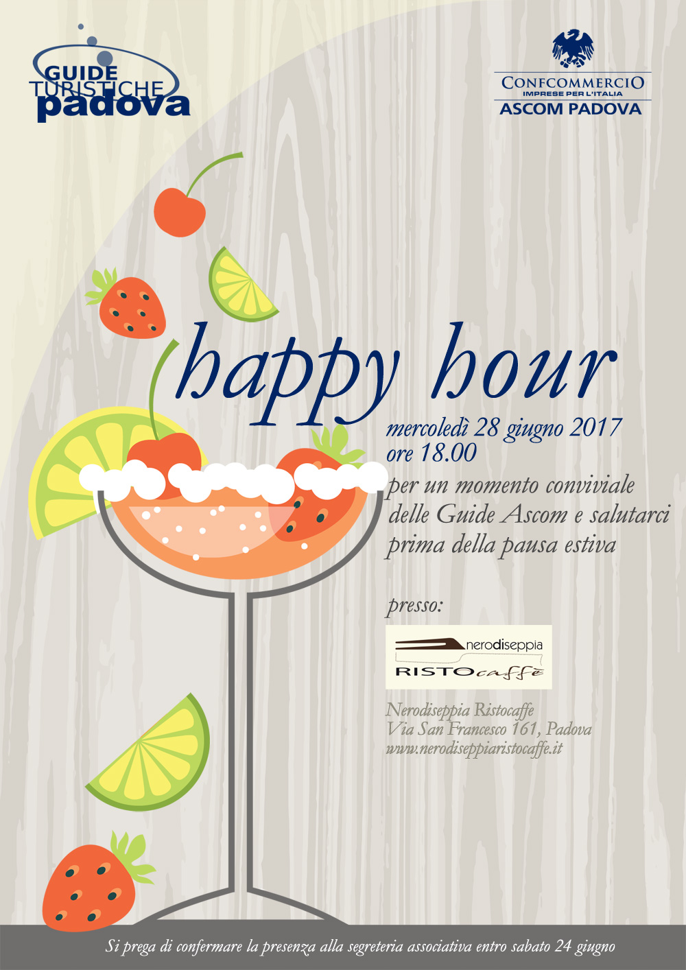 Mercoledì 28 giugno alle ore 18 le Guide Turistiche Ascom organizzano al Nero di Seppia Ristocaffè un Happy Hour prima della pausa estiva. Sarà l'occasione giusta per salutare insieme l'arrivo dell'estate.