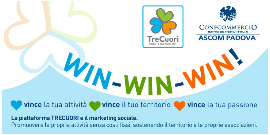 WIN - WIN - WIN. LA FILOSOFIA DEL MARKETING SOCIALE E' IL TEMA DEL SEMINARIO GRATUITO ORGANIZZATO ALL'ASCOM DI PADOVA PER ILLUSTRARE IL PROGETTO TRE CUORI