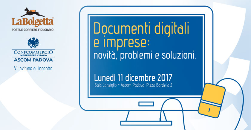 DOCUMENTI DIGITALI E IMPRESE: L’11 DICEMBRE ALL’ASCOM DI PADOVA IL CONVEGNO