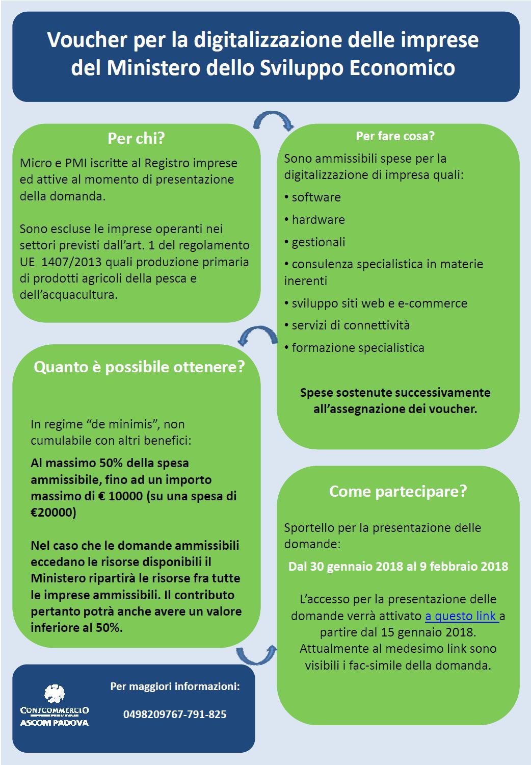 A partire dal 15 gennaio 2018 la procedura per la richiesta di assegnazione dei voucher sarà accessibile al seguente link per permettere alle aziende di prepararsi in funzione dell’invio della pratica che dovrà avvenire dal 30 gennaio al 9 febbraio 2018.