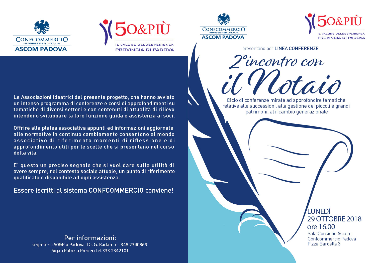 CONFCOMMERCIO PADOVA E INCONTRI CON IL NOTAIO: IL 29 OTTOBRE ALLE 16 IL SECONDO INCONTRO ALL’ASCOM IN PIAZZA BARDELLA
