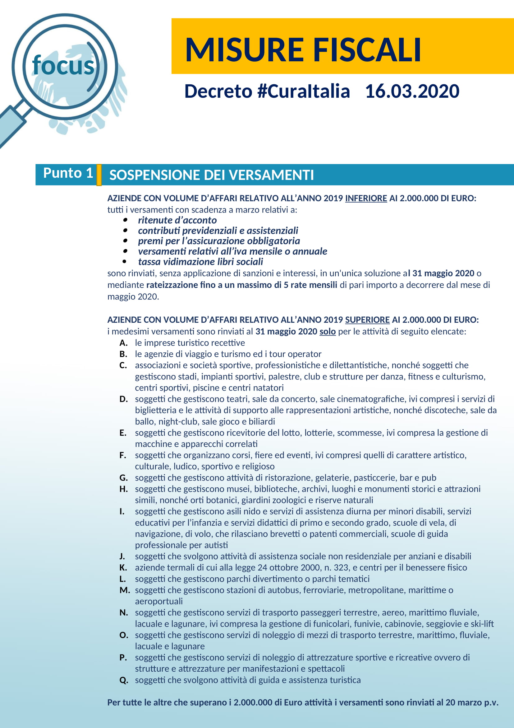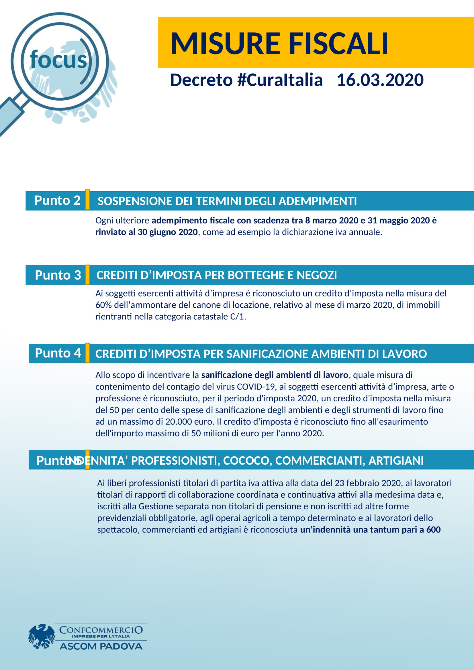 INFOGRAFICA RELATIVA ALLE MISURE FISCALI del Decreto #CuraItalia del 16 marzo 2020 con i punti principali che interessano le categorie del commercio turismo e servizi.