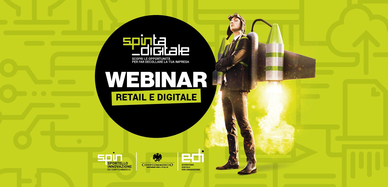 EDI Confcommercio propone il format Spinta Digitale, una nuova attività formativa rivolta alle imprese e declinata in 3 webinar, uno introduttivo e due di approfondimento verticale della durata di due ore ciascuno, sul tema del “Retail e Digitale: come superare l’emergenza” e con un particolare focus sulla strategia e sulla comunicazione per e-commerce.