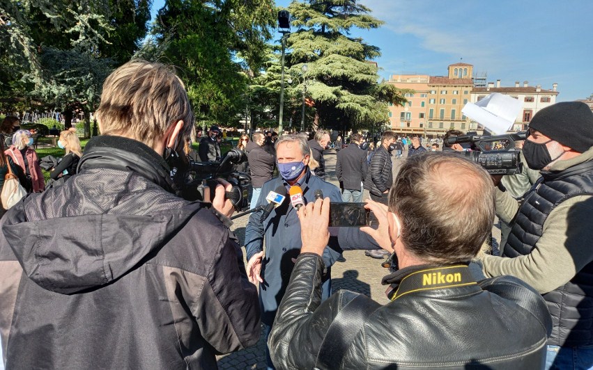 C'era anche il presidente regionale della Confcommercio, Patrizio Bertin, alla manifestazione organizzata dalla Fipe, la Federazione dei Pubblici Esercizi di Confcommercio, in piazza Bra a Verona.