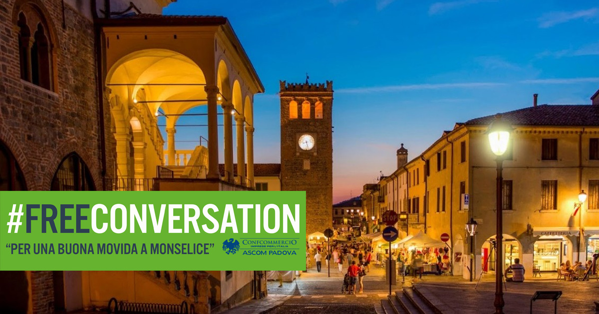 #FREE CONVERSATION – PER UNA BUONA MOVIDA A MONSELICE: L’INIZIATIVA DELL’ASCOM CONFCOMMERCIO VERRA’ PRESENTATA VENERDI’ NEL CORSO DI UNA CONFERENZA STAMPA NELLA SEDE DELL’ASSOCIAZIONE