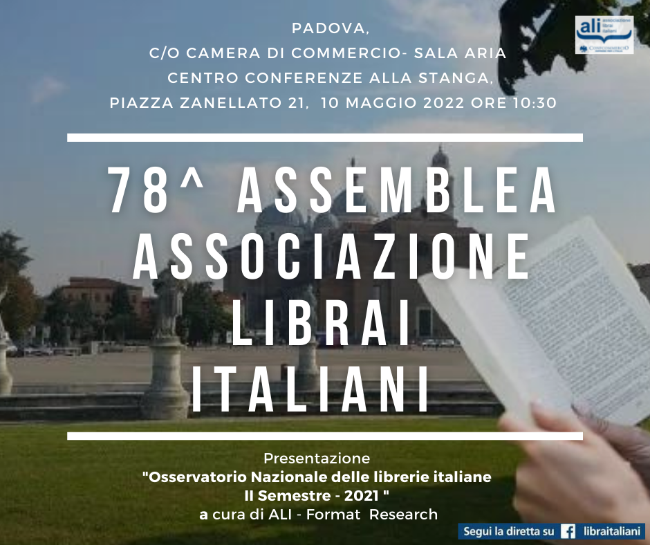 E' stata organizzata quest'anno a Padova la 78^ Assemblea Nazionale dell’Ali-Associazione librai italiani Confcommercio, presso la Sala Aria del centro conferenze alla Stanga, Piazza Zanellato 21, alle ore 6,30 in prima convocazione e alle 10,30 in seconda convocazione, nella sola giornata di martedì 10 maggio 2022, e divisa in due sessioni: