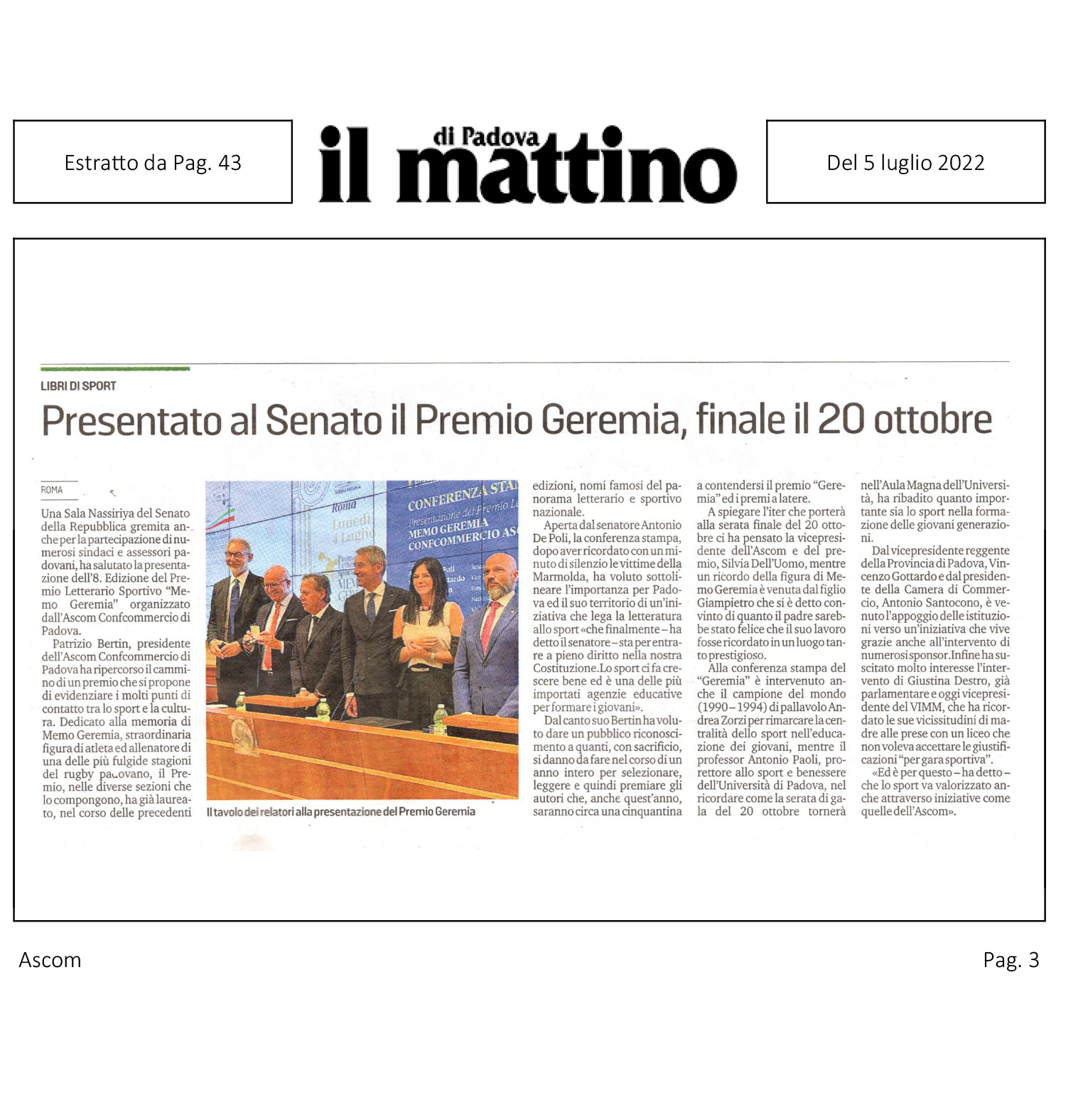- PRESENTATO AL SENATO IL PREMIO MEMO GEREMIA, FINALE IL 20 OTTOBRE - Il Mattino