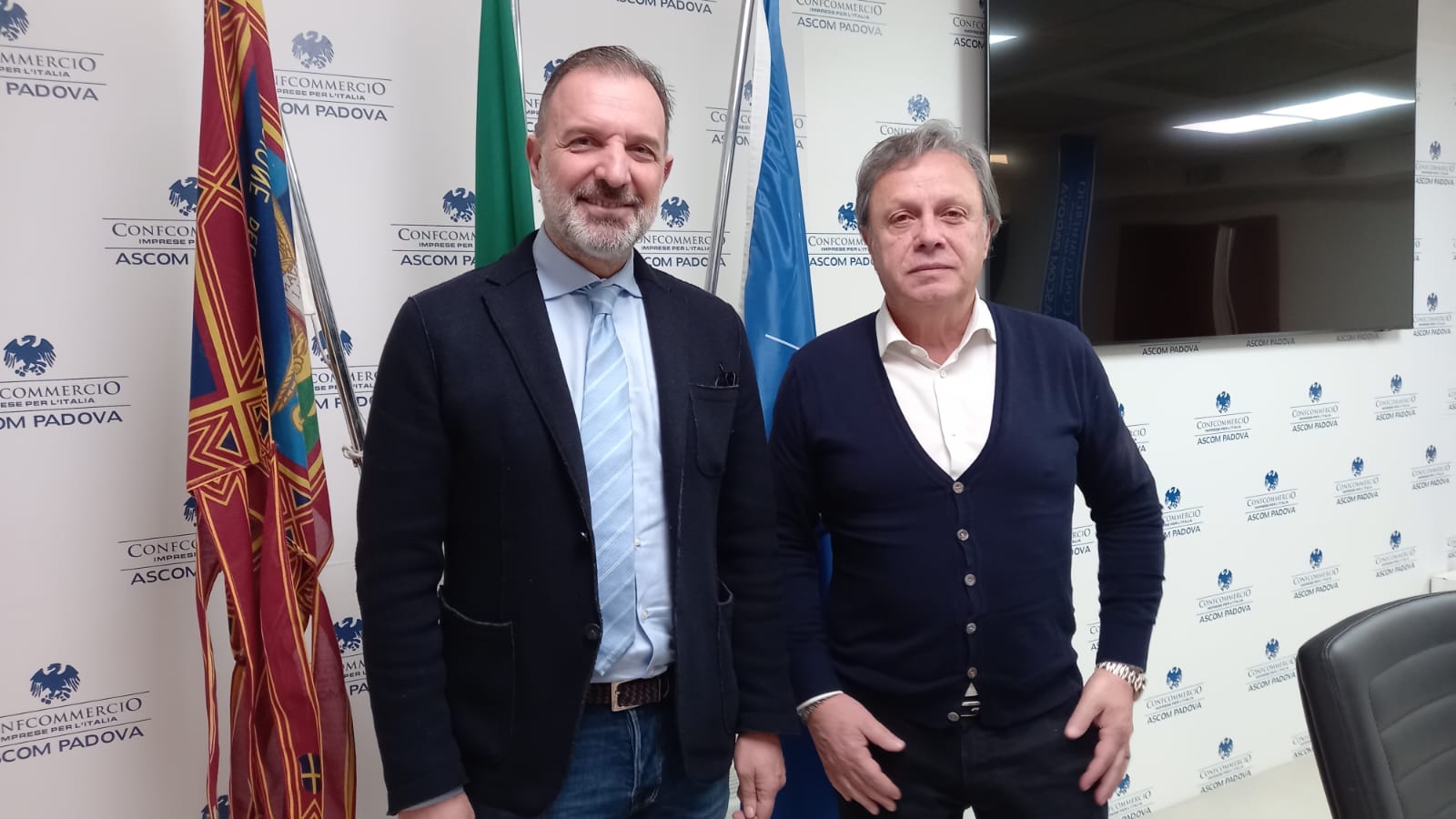 Incontro nella sede dell’Ascom Confcommercio di Padova tra il sottosegretario al Mimit, on. Massimo Bitonci ed il presidente di Confcommercio Veneto e Confcommercio Ascom Padova, Patrizio Bertin.