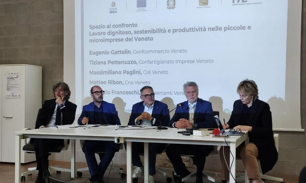 Il convegno, ospitato nella sala A del Forte Marghera, si è articolato nell’introduzione di Asvess; negli interventi di Tiziano Treu, già ministro e presidente del Cnel, e di Paolo Gubitta, docente universitario; quindi nella tavola rotonda con gli interventi di Eugenio Gattolin (Confcommercio Veneto), Tiziana Pettenuzzo (Confartigianato Imprese Veneto), Massimiliano Paglini (Cisl Veneto), Matteo Ribon (Cna Veneto), Maurizio Franceschi (Confesercenti Veneto). A tirare le conclusioni è stato il presidente di Asvess, già parlamentare, Giorgio Santini.