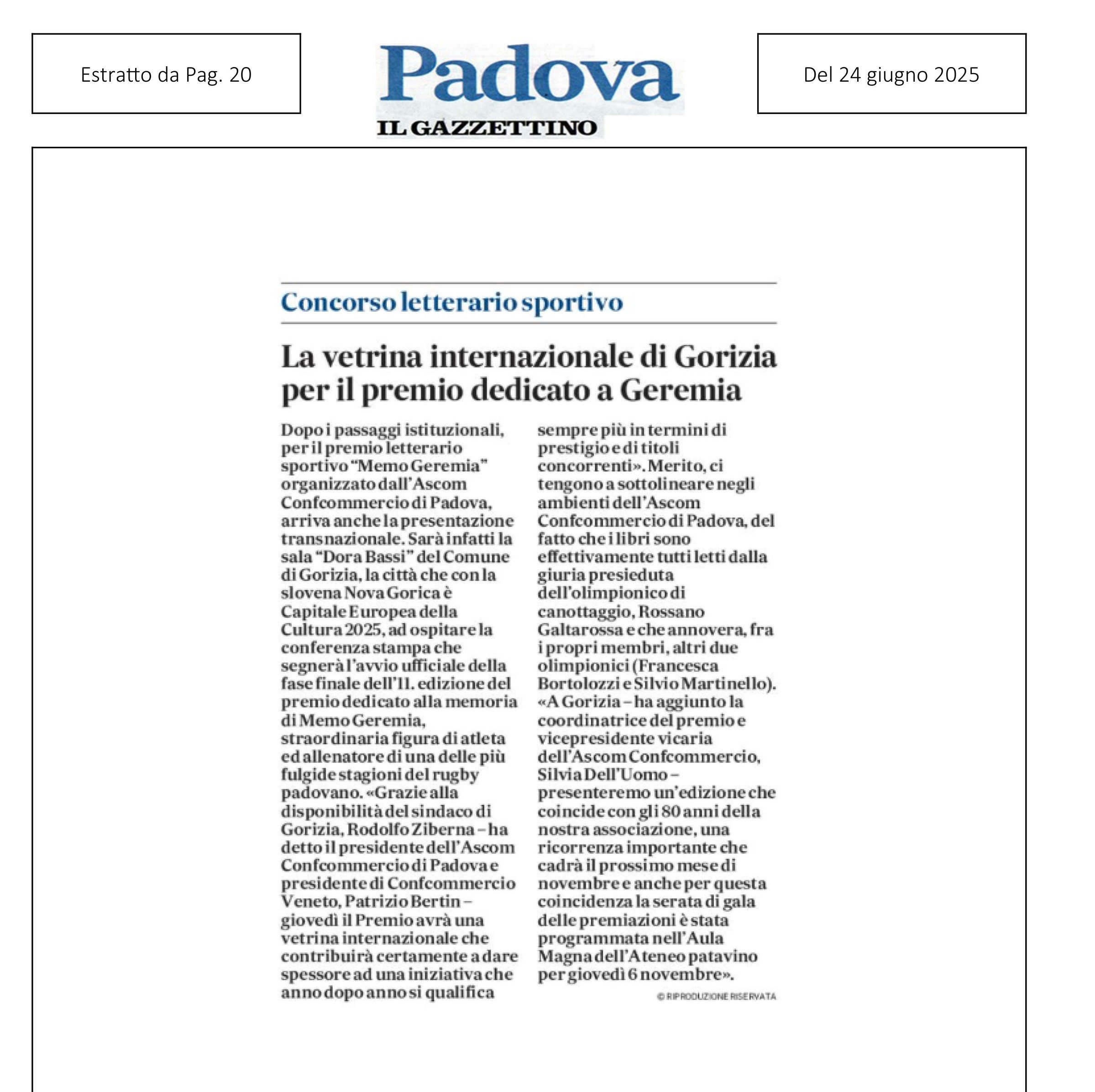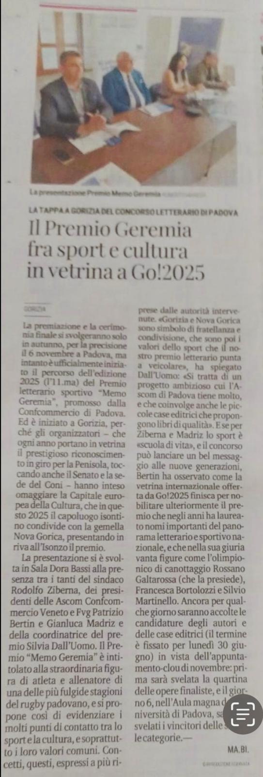 Gorizia, capitale europea della cultura con Nova Gorica, ha ospitato la presentazione ufficiale dell’11^ edizione del Premio Letterario Sportivo “Memo Geremia” organizzato dall’Ascom Confcommercio di Padova