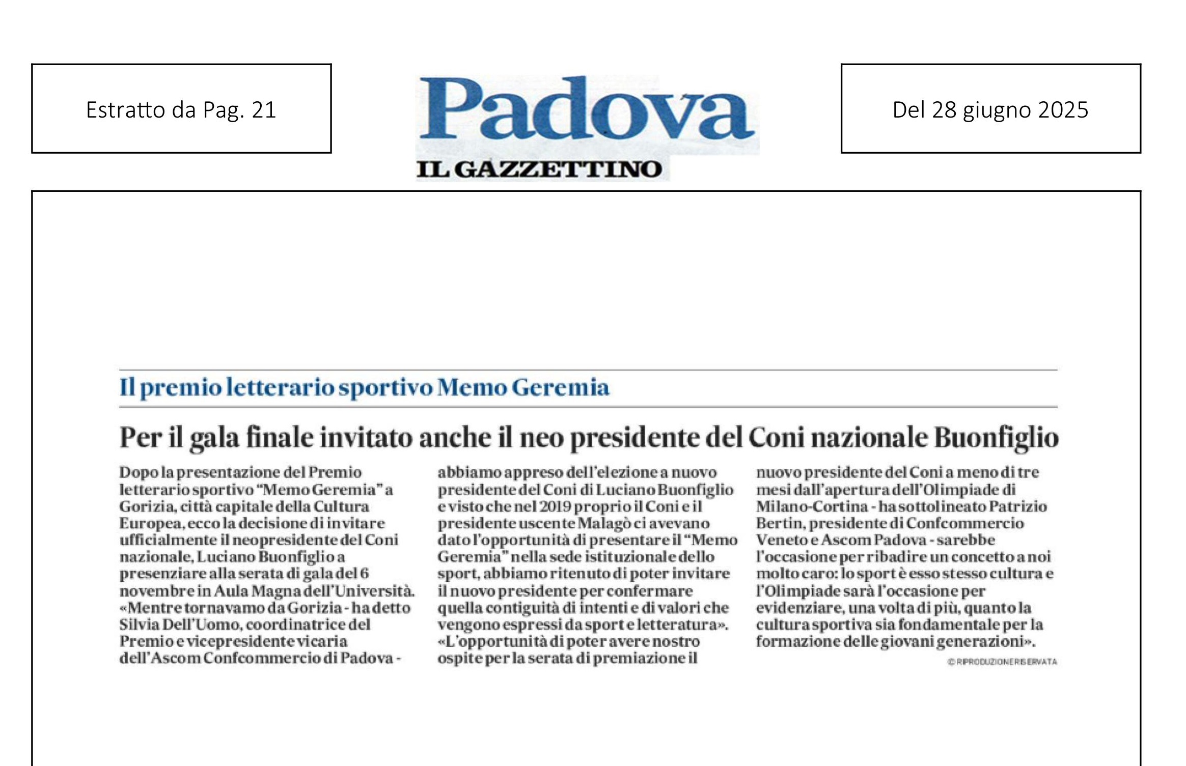 - Comunicato stampa su Il Gazzettino del 28 giugno 2025