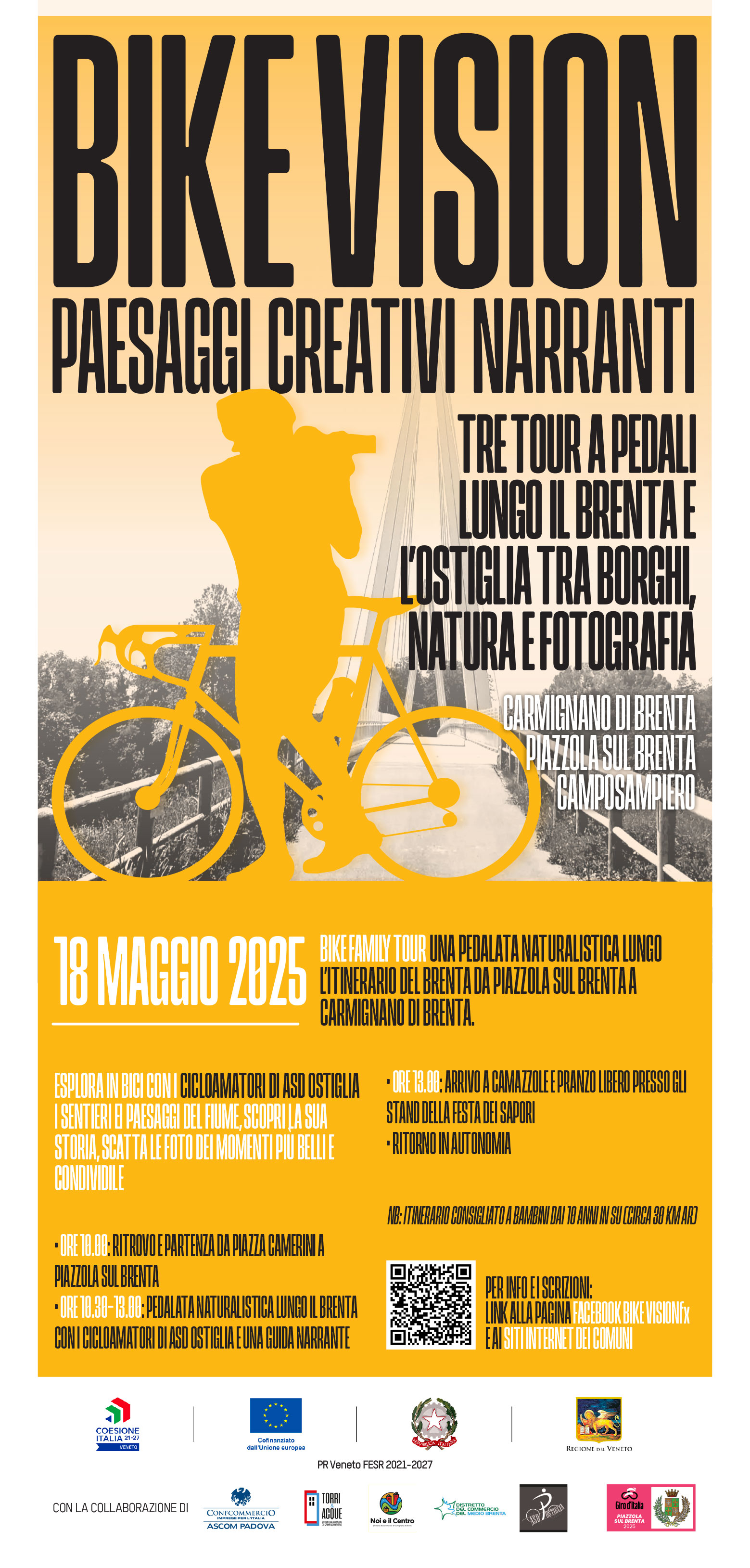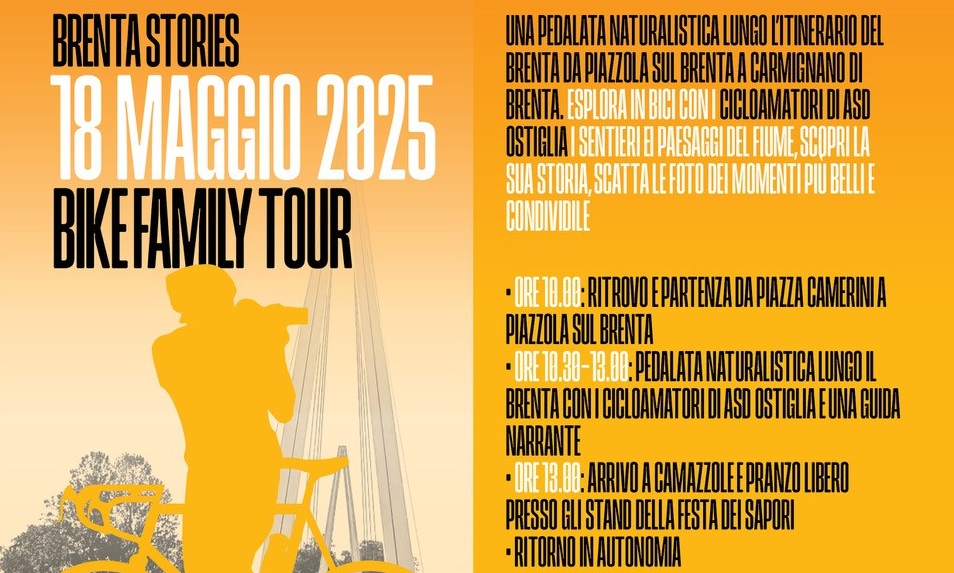 Una pedalata naturalistica lungo l’itinerario del Brenta da Piazzola a Camazzole. E’ la proposta di “Bike Vision - Passaggi Creativi Narranti”, l’iniziativa dei distretti del commercio di Carmignano di Brenta, Piazzola sul Brenta e Camposampiero (organizzati da Confcommercio Ascom Padova) che per domenica 18 maggio hanno calendarizzato, per le famiglie, una pedalata in compagnia dei cicloamatori di ADS Ostiglia e di una guida narrante.