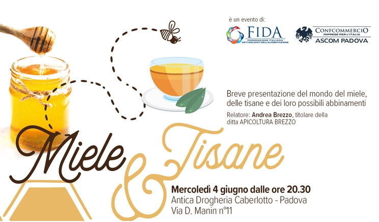 Sarà la saletta incontri dell’Antica Drogheria Caberlotto, in via Manin 11, la sede di un appuntamento ideato dagli alimentaristi della Fida Ascom Confcommercio di Padova per promuovere il consumo del miele abbinato alle tisane e non solo.