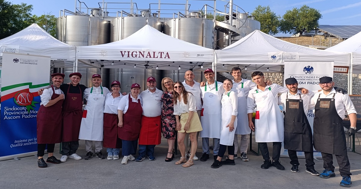 Un grande successo quello che ha incoronato, in una sera di mezza estate nella magnifica cornice dei Colli Euganei, la serata di degustazione che si è tenuta nella splendida cornice dell’Azienda Agricola Vignalta, a cura del Sindacato dei Macellai di Confcommercio Ascom Padova, interamente dedicata alla scoperta di nuovi abbinamenti e presentazioni per i piatti della tradizione, forte anche della partecipazione di oltre 200 persone.
