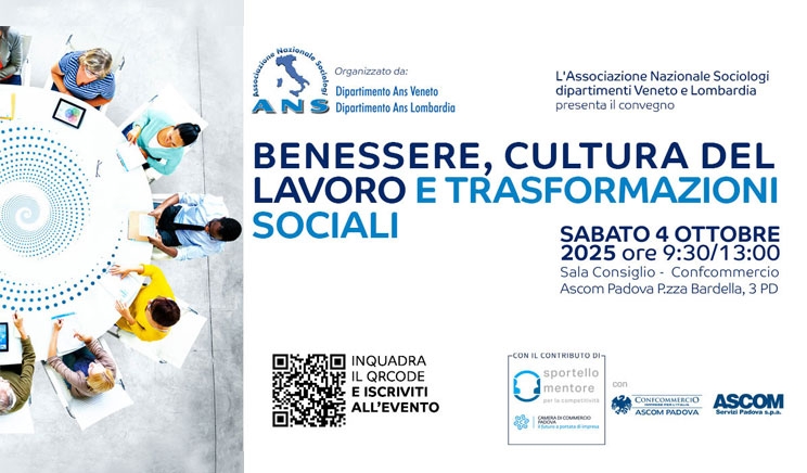 Sabato 4 ottobre all’Ascom Confcommercio di Padova a partire dalle 9:30 il convegno organizzato dall’Associazione Nazionale Sociologi dipartimenti Veneto e Lombardia