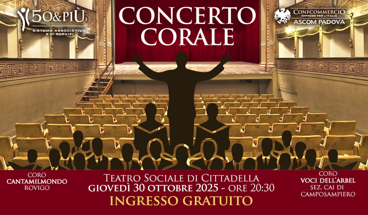 Concerto corale al Teatro Sociale di Cittadella giovedì 30 ottobre alle 20:30, organizzato da 50&PIU’ Confcommercio Padova