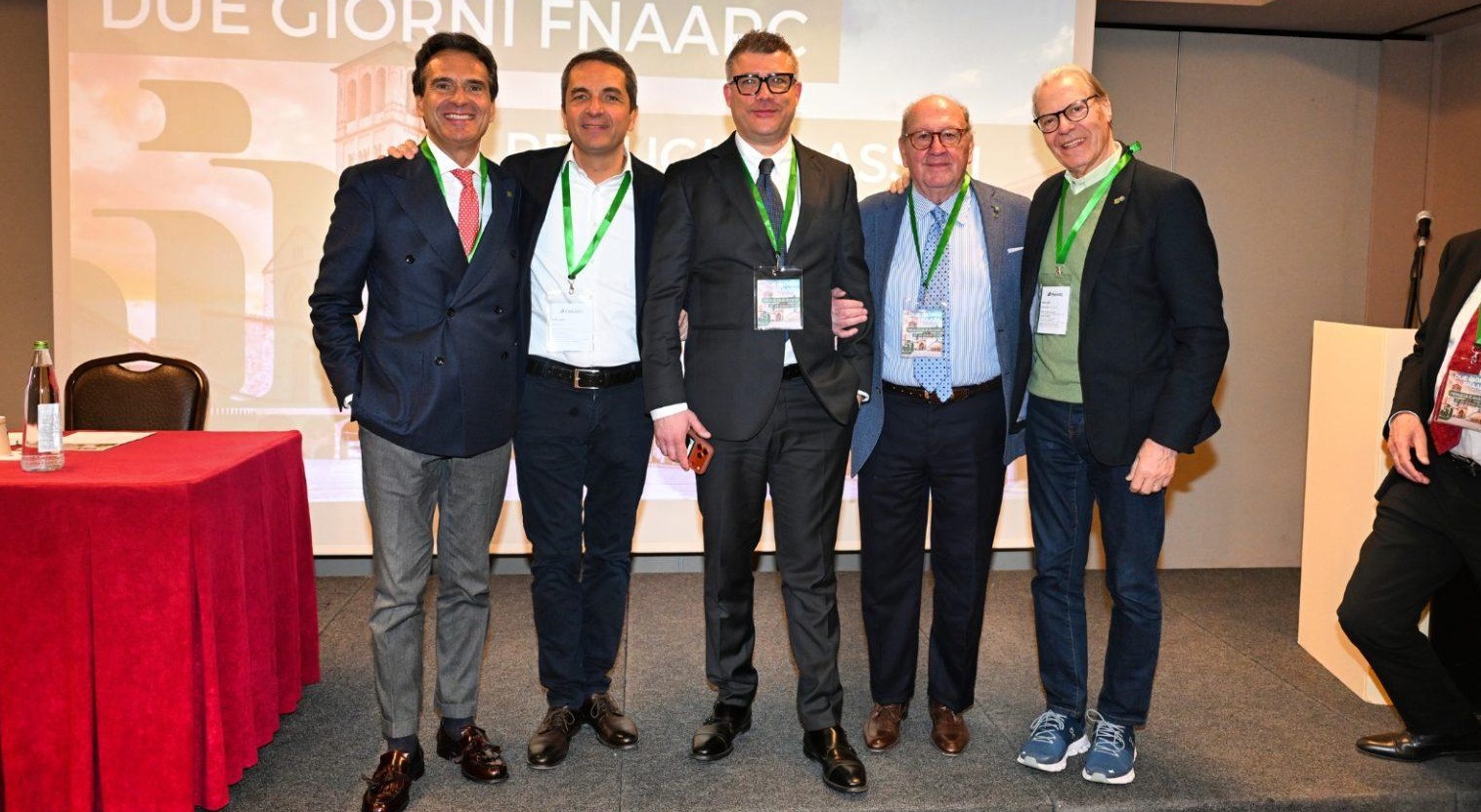 Nella foto da sinistra: Massimiliano Pratesi (vicepresidente Fnaarc); Alberto Petranzan (presidente Fnaarc); Marco Barbieri (segretario generale Confcommercio); Sergio Mercuri (vicepresidente vicario Fnaarc); Carlo Trevisan (vicepresidente Fnaarc e presidente Fnaarc Confcommercio Padova)