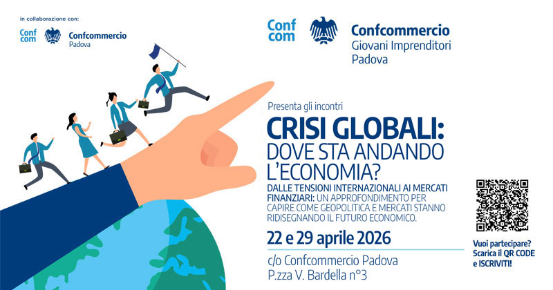 Per offrire strumenti concreti di lettura e interpretazione, il Gruppo Giovani Imprenditori Padova promuove due incontri dedicati all’analisi dei principali fenomeni economici contemporanei. Le serate, in programma il 22 e 29 aprile dalle 19:00 alle 20:30, saranno pensate come momenti di approfondimento accessibili ma rigorosi, con l’obiettivo di fornire chiavi di lettura chiare e attuali. A seguire, i partecipanti potranno proseguire il confronto durante un aperitivo di networking, favorendo lo scambio di idee e la creazione di nuove connessioni professionali.