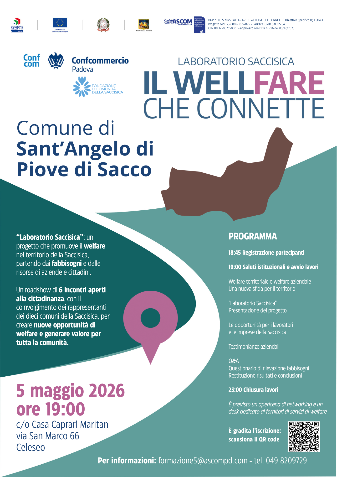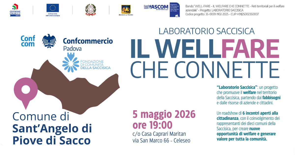 Nel corso dell'incontro, si parlerà di welfare aziendale, contrattuale e territoriale, verrà presentato il progetto Laboratorio Saccisica e saranno ascoltate le testimonianze di imprese e realtà locali che stanno già implementando servizi e soluzioni di welfare.