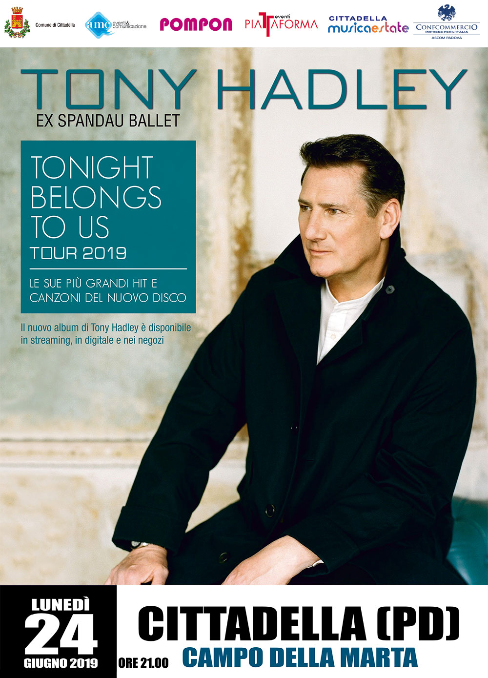 TONY HADLEY IN CONCERTO LUNEDI 24 GIUGNO IN CAMPO DELLA MARTA A CITTADELLA