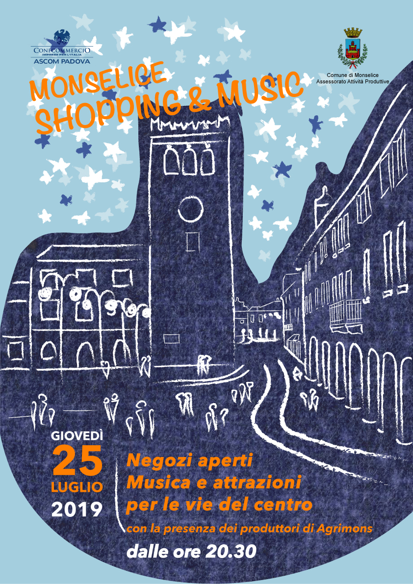 GIOVEDI 25 LUGLIO "MONSELICE SHOPPING&MUSIC". IL CENTRO CITTADINO PRONTO AD ACCOGLIERE MUSICA E ATTRAZIONI CON OCCASIONI DI SHOPPING E I PRODUTTORI DI AGRIMONS
