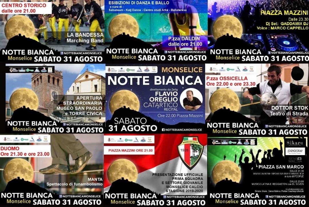 SABATO 31 AGOSTO TORNA LA “NOTTE BIANCA” DI MONSELICE