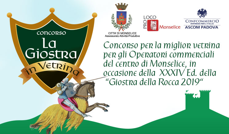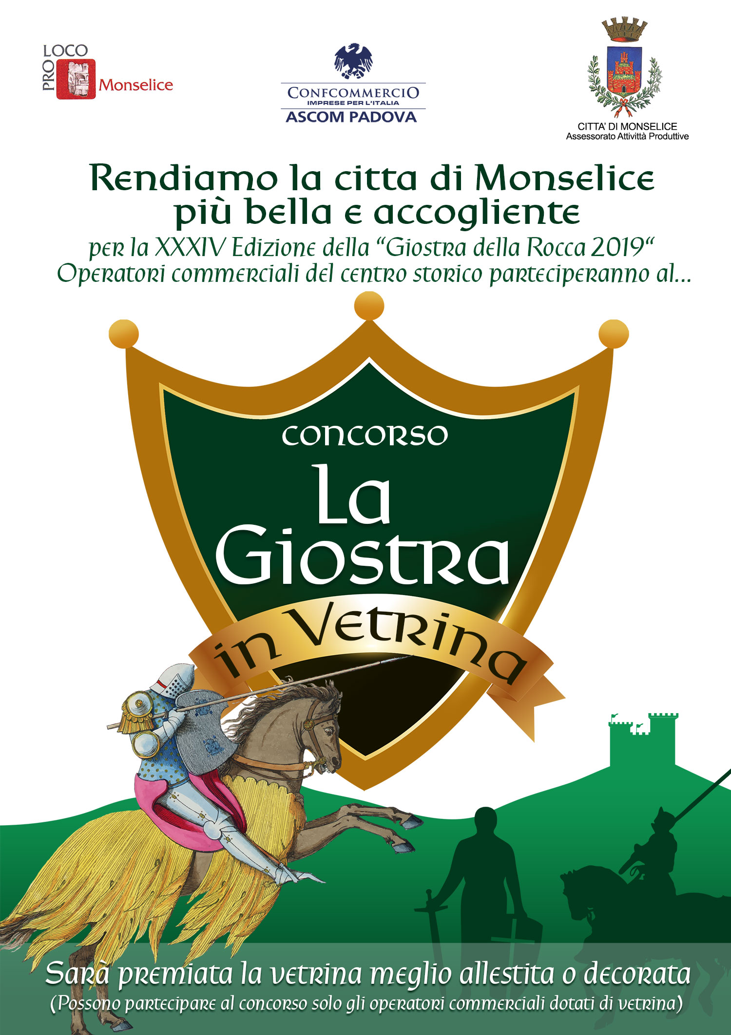 L’assessorato alle attività produttive del Comune di Monselice ha indetto, in occasione della XXXIV edizione della “Giostra della Rocca”, il concorso “La Giostra in Vetrina”, dedicato agli operatori commerciali del centro storico che siano titolari di un esercizio dotato di vetrina.
