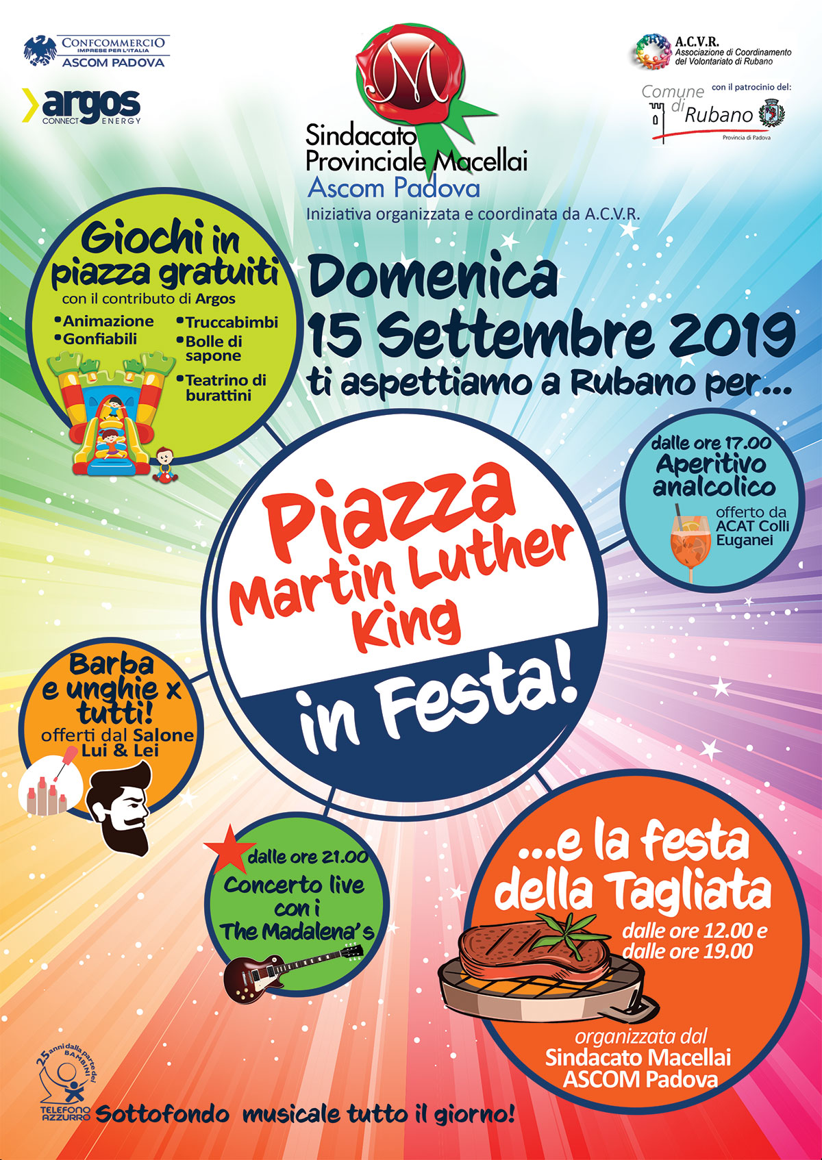 DOMENICA 15 SETTEMBRE A RUBANO PER TUTTO IL GIORNO “PIAZZA MARTIN LUTHER KING IN FESTA”