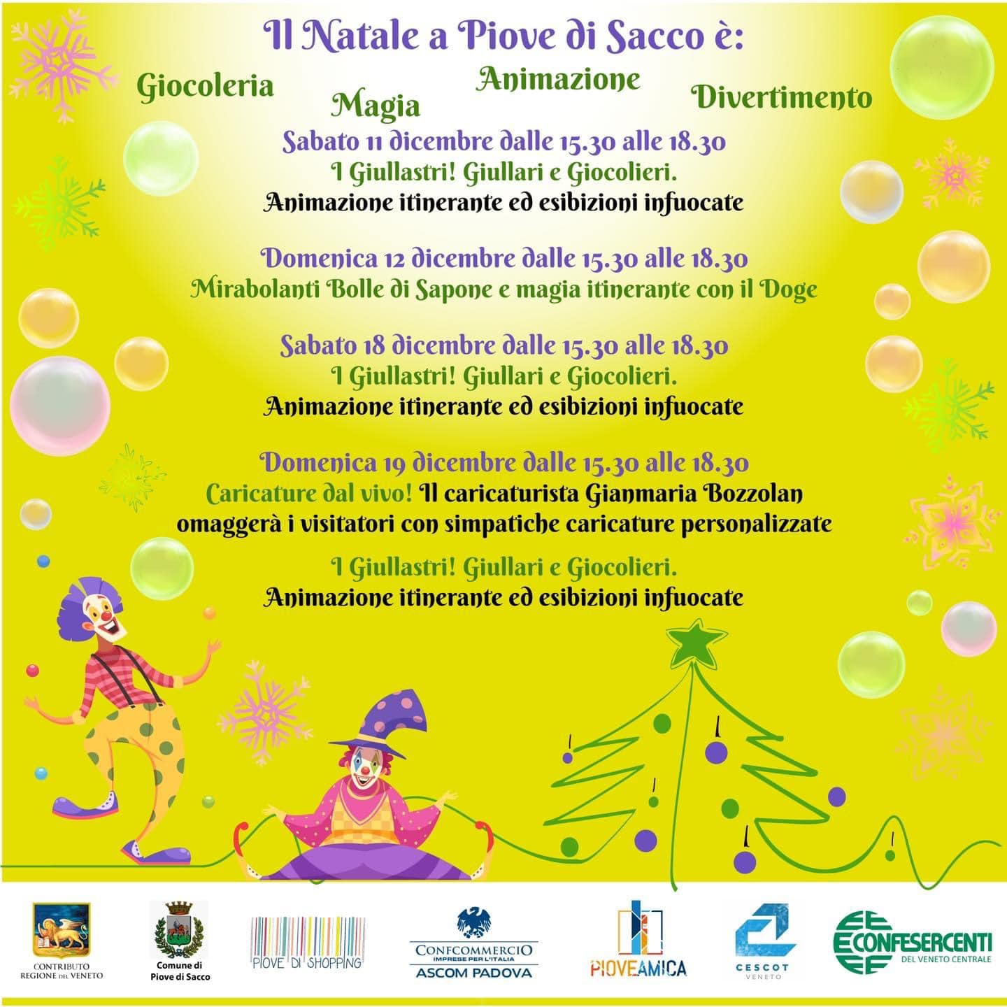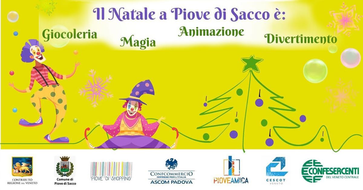 Giocoleria Magia Animazione e Divertimento sono le declinazioni del Natale a Piove di Sacco che animeranno la città da sabato 11 a domenica 19 dicembre, grazie all’Amministrazione Comunale in collaborazione con il Distretto del Commercio di Piove di Sacco, Confcommercio Ascom Padova, l’Associazione Piove Amica, Cescot Confesercenti e con il contributo della Regione Veneto.