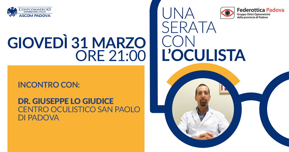 UNA SERATA CON L'OCULISTA": GIOVEDÌ 31 MARZO ALLE 21 ALL'ASCOM DI PADOVA