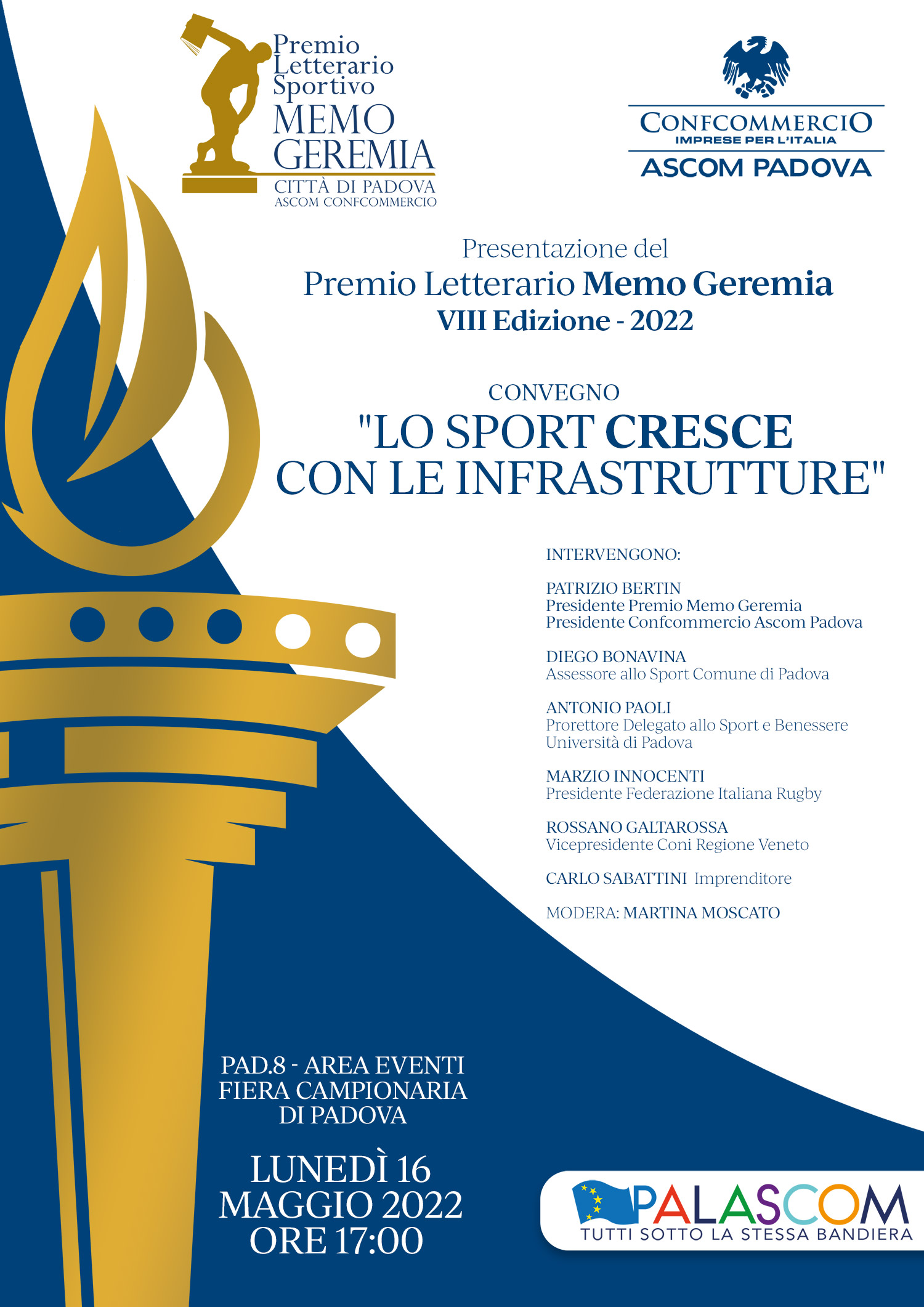 Ad anticipare le mosse dell’edizione 2022 del premio che nella passata edizione ha visto Sinisa Mihajlovic e Andrea Di Caro aggiudicarsi l’ambito riconoscimento, interverranno, oltre a Patrizio Bertin, presidente dell’Ascom Confcommercio (che del premio è titolare); Rossano Galtarossa, vicepresidente del Coni regionale e presidente della giuria del “Memo Geremia”; Diego Bonavina, assessore allo sport del Comune di Padova; Antonio Paoli, prorettore delegato allo sport e benessere dell’Università di Padova; Marzio Innocenti, presidente della Federazione Italiana Rugby e Carlo Sabattini, imprenditore.