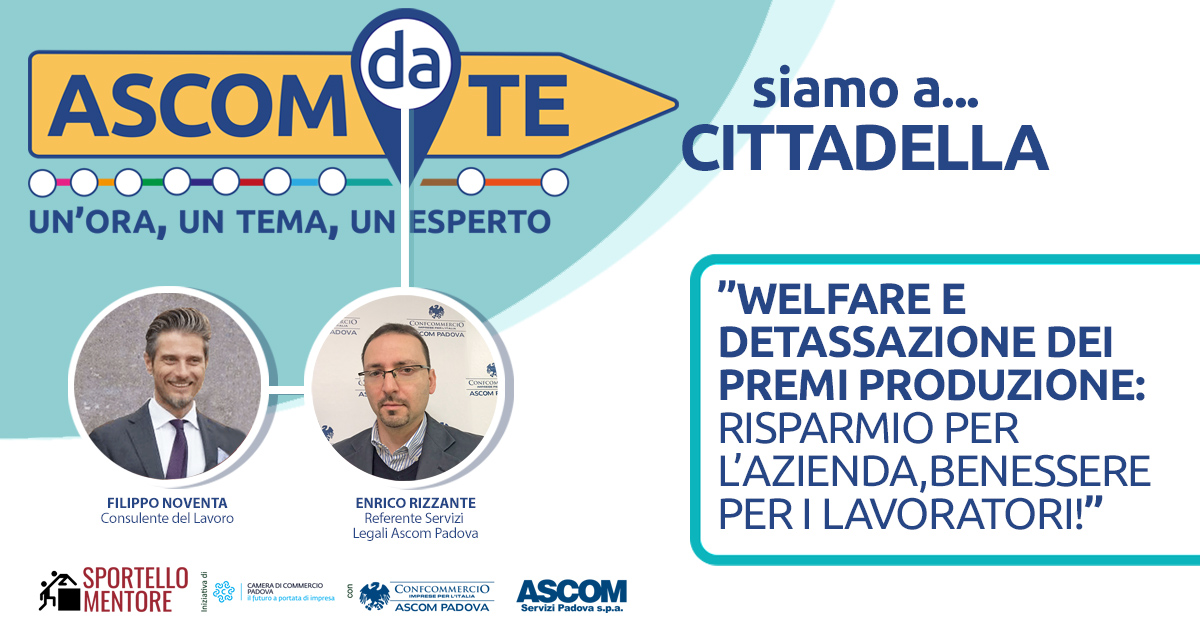 OGGI MARTEDÌ 25 OTTOBRE, “ASCOM DA TE” A CITTADELLA: L’EVENTO SUL “WELFARE E DETASSAZIONE DEI PREMI PRODUZIONE”