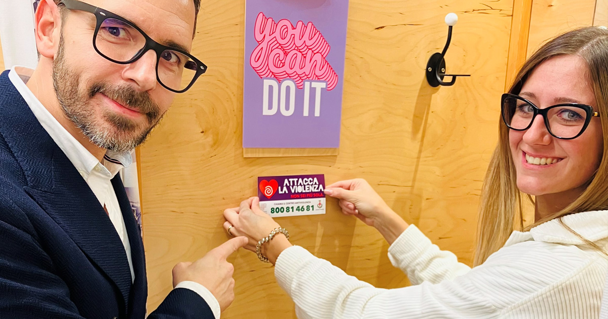 Il fatto di posizionare l’adesivo nel luogo protetto del camerino dovrebbe facilitare la possibilità di rivolgersi agli operatori del Centro Antiviolenza con una modalità più riservata e sicura.
