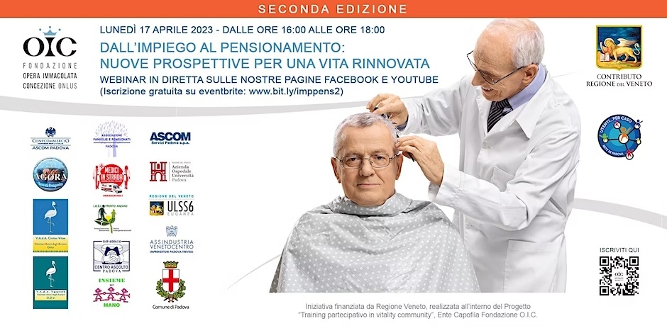 "DALL'IMPIEGO AL PENSIONAMENTO: RIFLESSIONI E PROSPETTIVE PER UNA NUOVA VITA": LUNEDI’ 17 APRILE ALLE 16 IL WEBINAR DEL SECONDO EVENTO ORGANIZZATO DA FONDAZIONE OIC E REGIONE VENETO