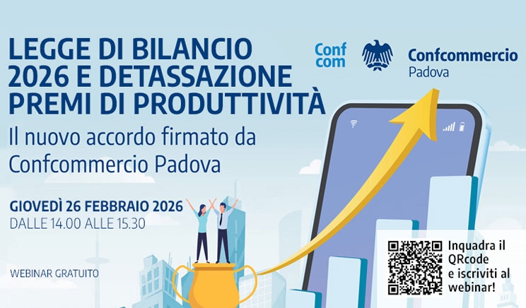 E giusto per approfondire i termini dell’accordo e le opportunità che lo stesso offre, Ascom Servizi, braccio operativo di Confcommercio Padova, ha organizzato per giovedì 26 febbraio alle ore 14.00 un webinar dedicato alle novità normative introdotte dalla Legge di Bilancio 2026.