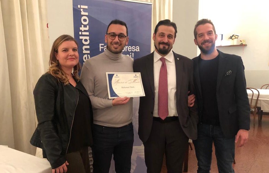 L’occasione di convivialità è stata il momento ideale per tracciare un resoconto dell’attività svolta dal gruppo durante l’anno e premiare un giovane imprenditore che si è distinto per aver sviluppato due attività imprenditoriali con orgoglio e tenacia, Mohamed Sbahi, 35enne siriano amministratore sia della società Sirma Food s.a.s., che importa e distribuisce specialità arabe, turche e balcaniche che della neo-nata ISHA SRL.