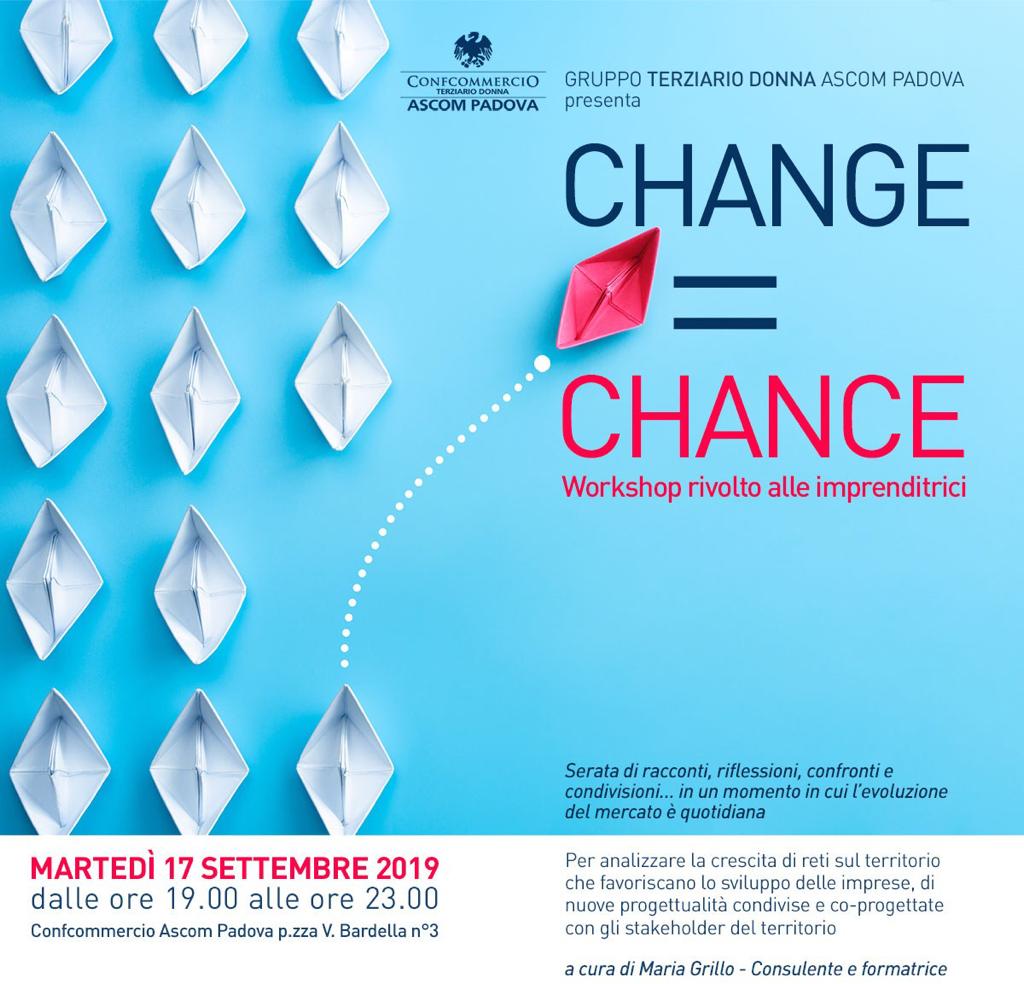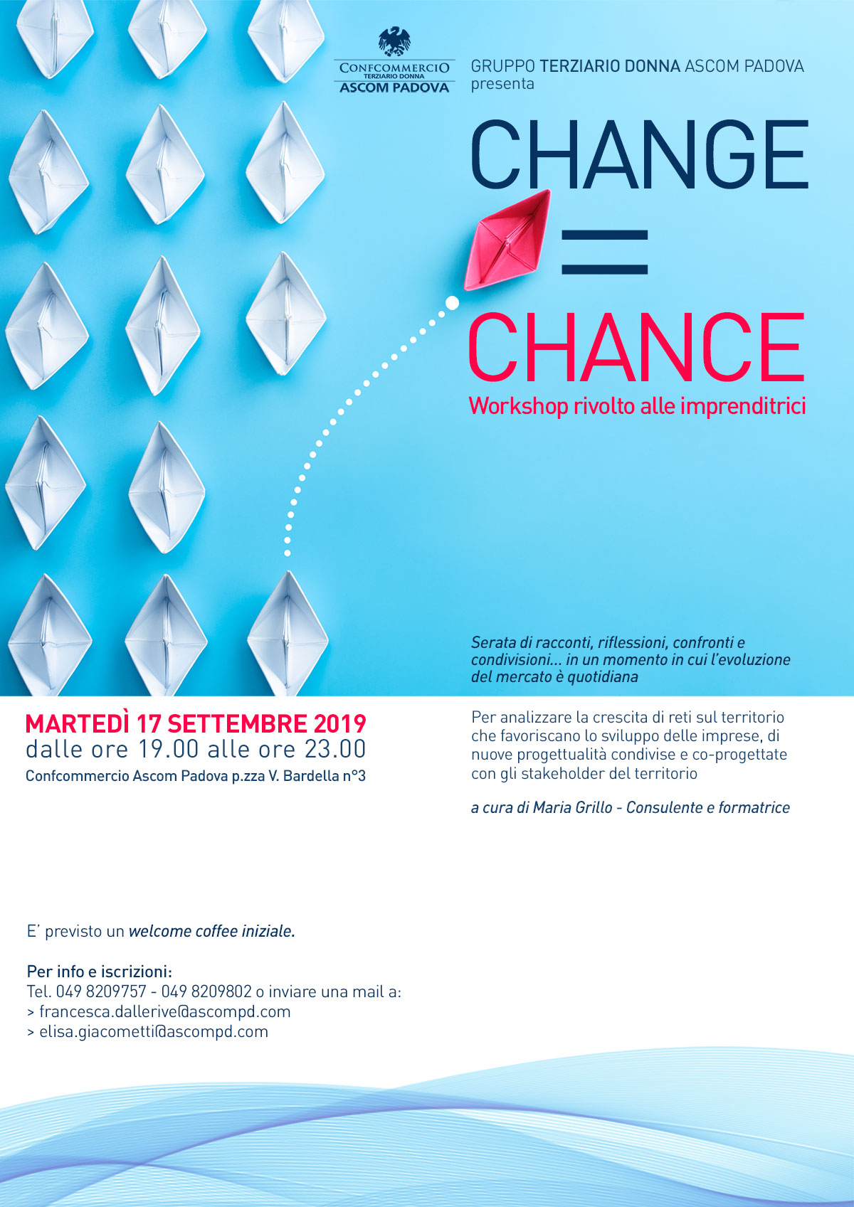CHANGE = CHANCE IL 17 SETTEMBRE DALLE 19 ALLE 23 WORKSHOP PER CAPIRE LE SFIDE DI UN MERCATO IN EVOLUZIONE