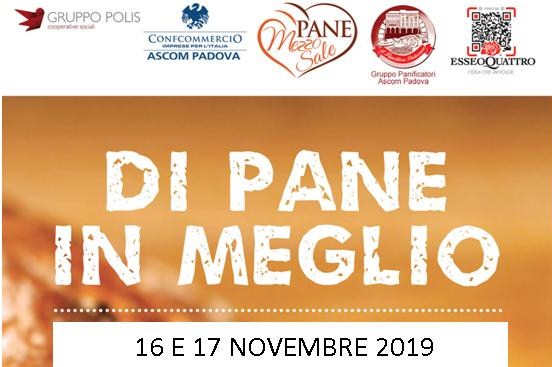 Dopo il grande successo del primo week end dedicato all’iniziativa "Di Pane in Meglio", la quarta edizione dell'iniziativa di raccolta fondi a favore del centro diurno La Bussola organizzata dal Gruppo Polis in sinergia con il Gruppo Panificatori Ascom, anche per il prossimo week end del 16 e 17 novembre i banchetti del Gruppo Polis, che distribuiranno un prodotto particolare e speciale, il “Pane Mezzo Sale”, a fronte di una offerta saranno posizionati davanti alle parrocchie di Cristo Risorto (Mortise), Taggì di Sotto (Villafranca), Mellaredo di Pianiga, Madonna della Salute (Mortise), Abcs Torre, Buon Pastore (Padova), Condominio e Palestra Fides (Mortise), Cristo Re (Padova), Rubano, Montà (Padova), Rivale, S. Antonino (Arcella), Pontevigodarzere (Padova), Legnaro, Altichiero (Padova) e Casalserugo.